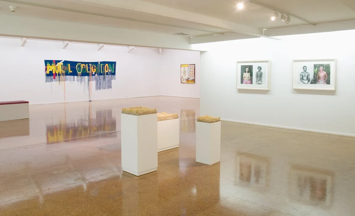 On the surface, the difference between Australia’s two Territories could not be greater. The Northern Territory’s steaming tropical climate nurtures an open-air lifestyle that is all but foreign in the semi-alpine continental climate of Capital Territory. Canberra’s ‘utopian’ city plan and refined sense of socio-political order provides a stark contrast to Darwin’s chaotic optimism on the edge of Australia’s wildest frontier. Whether at the centre of ‘civilisation’ or the most far-flung corner of the continent, however, both Territories suffer a sense of isolation and alienation that is both physical and psychological. Territorial brings artists based in the ACT and NT together, whose work offers insights into the mind-sets of internal territory, autonomous territory, dark territory, peripheral territory and new territory. (David Broker, 2007)