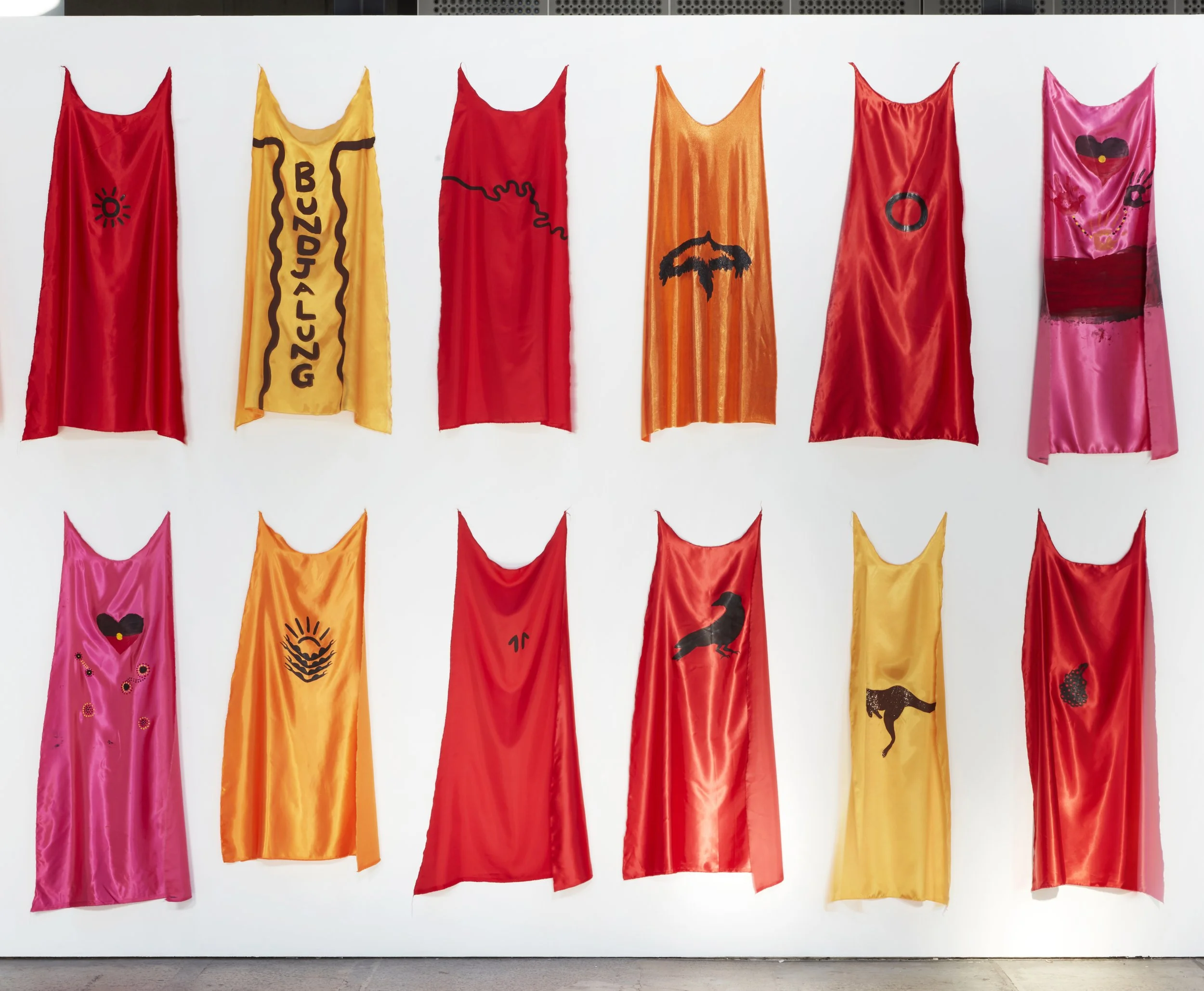 As superheroes, Golding and his young collaborators are empowered and reminded of the strength of their culture in forming their identity and connection to Country. Individually and together, the capes critique social, political and cultural representations of contemporary First Nations experience.